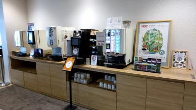 ロビーの横にラウンジが有り、無料のドリンクでくつろげます。
