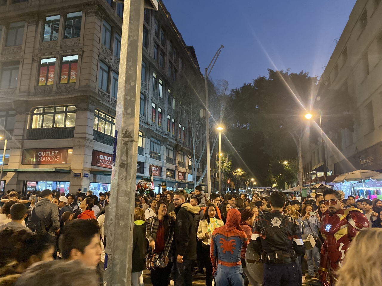 日中と夜どちらも訪れましたが、夜はとにかく人が多いです。通りにはショップやレストランが並んでいて、タコスの屋台もあります。ラテンアメリカタワーからセントロまで歩いて移動する際に通り、見るだけでとても楽しめました。