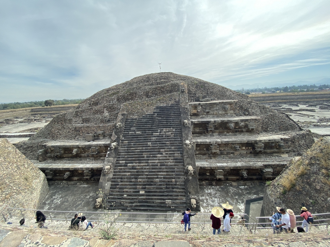 テオティワカン遺跡のなかで一番大きなピラミッドです。頂上までたどり着くのに急な階段を上るため、かなり体力がいります。月のピラミッドの上から太陽のピラミッドを眺める楽しみ方がベストだと思います。足腰が鍛えられます。