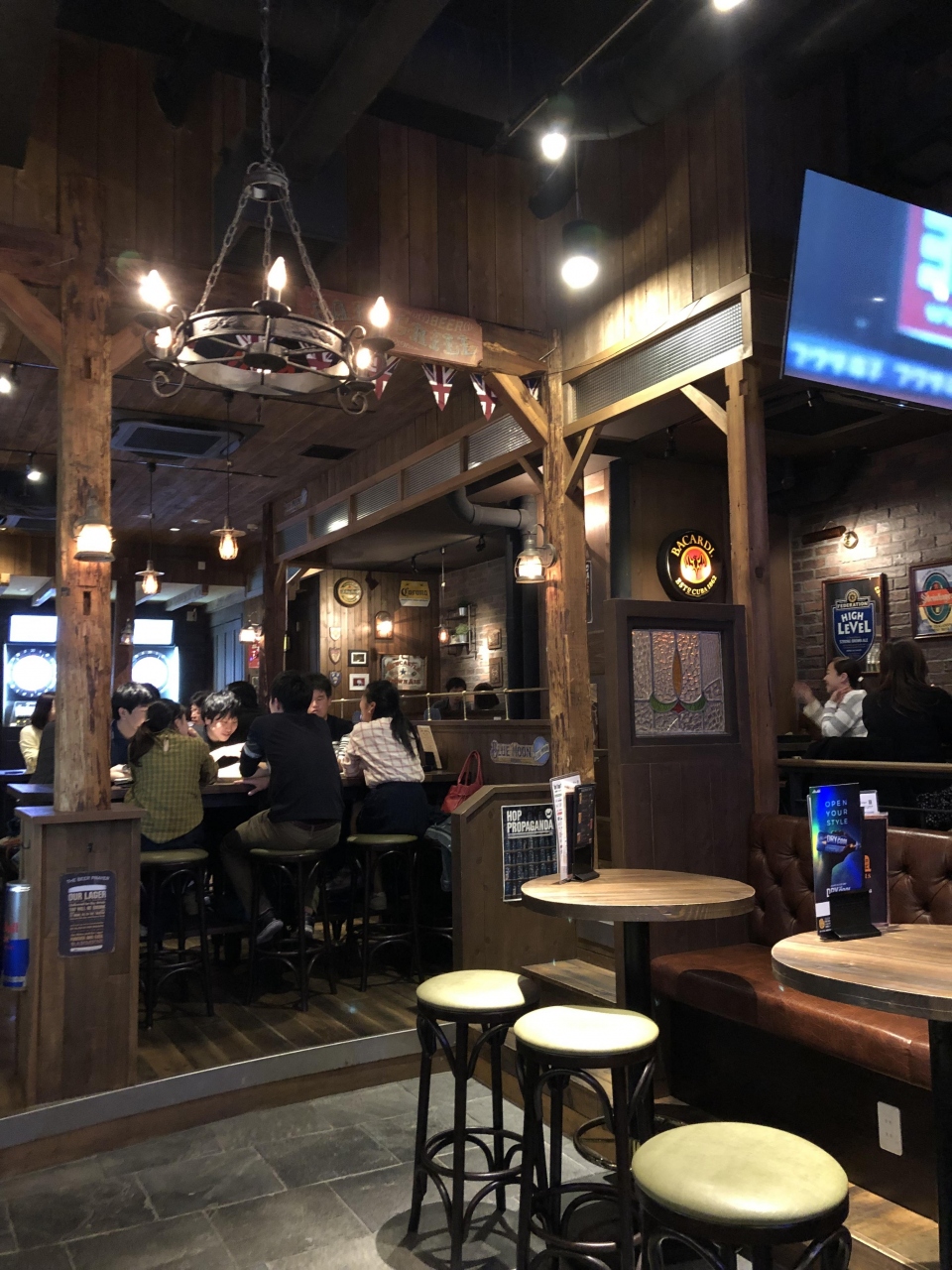 北千住にあるHUBの店舗。北千住駅西口近くのビルの地下にあります。どの店舗も雰囲気は変わりませんが、平日の夜にもかかわらず、多くの人で賑わっていました。ハブエールは飲みやすくいつも注文してしまいます。