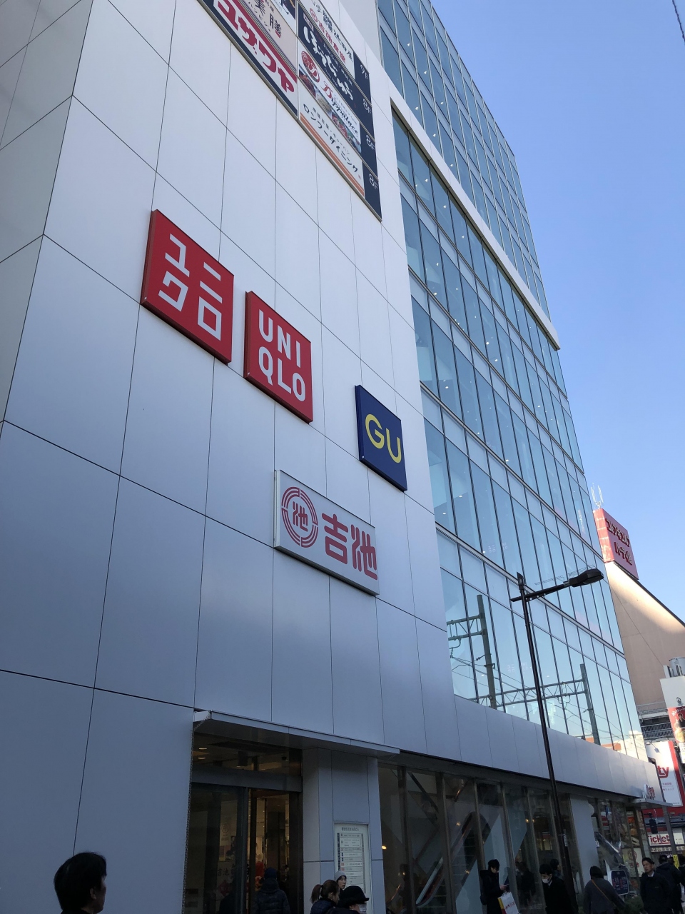 JR御徒町駅前にあるビルの1Fから4Fまでがユニクロとなっています。品ぞろえも多く、銀座の店舗のように複数階にまたがっていないので、買い物もしやすいと思います。海外からの観光客も多く訪れているようです。