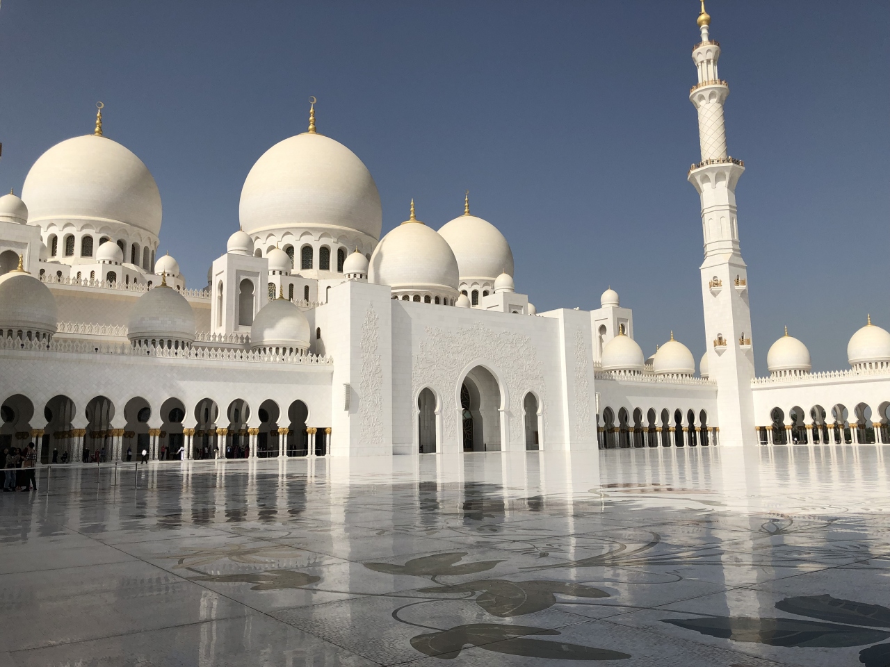 アブダビ観光の目玉です。アブダビの路線バスで行くこともできます。入場は無料で、出身地や性別などの情報をモニターに入力し、チケットが発行されます。巨大なモスクで、真っ白な外観も、ペルシャ風な内観も綺麗でした。2007年に建設完了したモスクなので、古くからの歴史などを感じられる場所ではありませんでした。