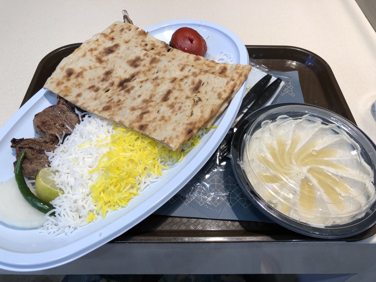 超巨大ドバイモール内のフードコートです。3Fと1Fにあります。ファーストフードや、中近東、インド料理屋、中華など色んな種類のお店が充実しています。ここで4色食べましたが、日本には少ないアラビア・ペルシャ系のお店に通いました。値段もレストランで食事するより安く抑えれます。