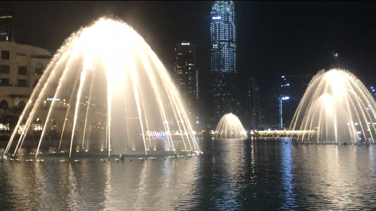 ドバイモール内にある噴水です。30分に一度音楽に合わせてショーが始まります。日が暮れてからの方が綺麗です。モール内のレストランのテラス席で、食事を楽しみながらショーを楽しむのがドバイ旅行の一つの醍醐味だと思います。