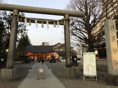 浅草の浅草寺の正面右側に位置している浅草神社。こじんまりとした神社でした。浅草寺よりもはるかに参拝客は少なく、落ち着いた空間の中で、ゆっくりとお参りすることができました。朱色の本殿が小さくて可愛らしい造りです。