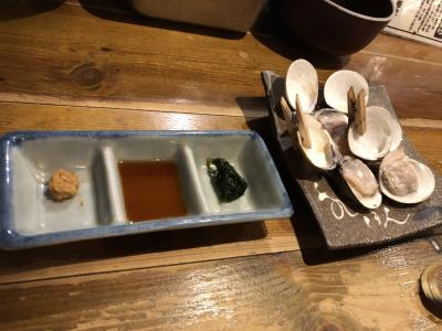 お通しの焼きハマグリがわんこ蕎麦方式で出てきます。薬味を付けたり、味付けされているものに関してはそのままいただきました。他メニューは串揚げがメインで、唐揚げやサラダなどの居酒屋定番メニューもあります。ドリンクも含め、リーズナブルなのでお財布に優しいお店だと思います。