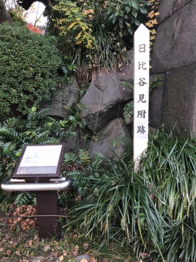 日比谷公園敷地内にあり、日比谷通りぞいの銀座方面からの入り口から入ってすぐのところにあります。現在でも石垣はしっかりと残っていました。石垣の上からは心字池が一望できます。入口から入って、通りがかる時に少し見る程度で充分だと思います。