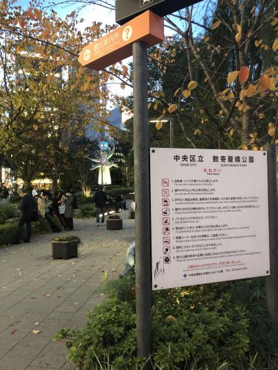 銀座エリアにある小さくてお洒落な公園です。なぜか、大阪府吹田市の万博記念公園にある太陽の塔みたいなモニュメントがあり、夜はきれいにライトアップされていました。買い物で疲れたら一息つくのによい公園だと思います。