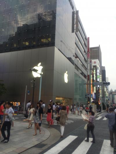 銀座中央通りにあるアップルストアの店舗で、いつも大勢の客で賑わっています。お店は1階と2階があり、2階にアクセサリー関係、1階にPCやIpodが陳列されています。土日は歩行者天国となっているので、休日の方がアクセスしやすいかと思います。