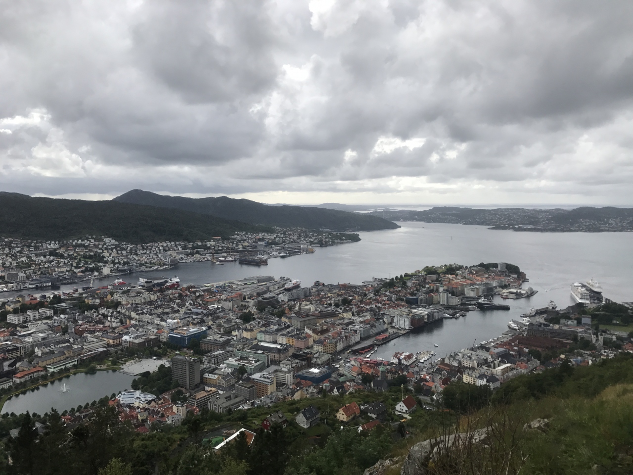 ケーブルカーでフロイエン山の頂上まで行くことができます。晴れていれば、ベルゲン市街を一望することができ、見晴らしのいい海を見渡すことができますが、天気が曇りだったので残念でした。頂上にはお土産屋もありました。