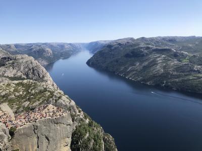 スタヴァンゲルで船+バスのチケットを購入し、トレッキング開始地点まで来ることができます。コースは登山初心者でも十分登れるくらいの難易度ですが、ちゃんとしたシューズは必須です。天気が良ければ眺めが最高です。