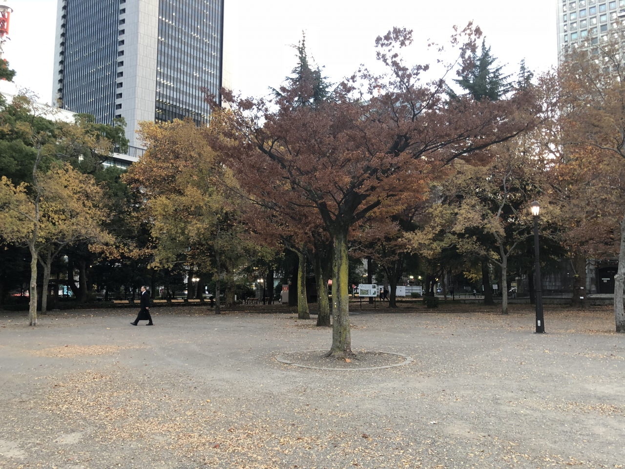 日比谷公園敷地内にあり、第二花壇と日比谷公会堂の間にある広場。特に何の見どころもなく、ただの広場で、平日は人もあまりいません。週末でイベントが開催されている日になると、たくさんの子供たちが走り回っています。