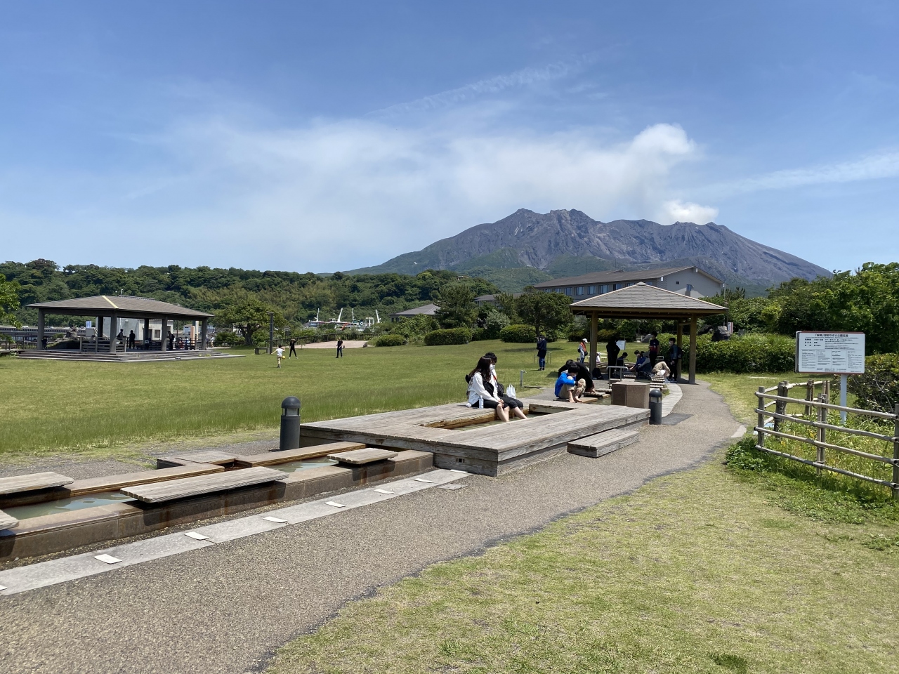 桜島フェリーターミナルから一番近い観光スポット?なのかなと思います。ビジターセンターも近くにあり、観光の拠点にある足湯ですが、大海原を眺めながら、無料で楽しめる足湯でした。敷地も広々としていて開放感が半端ないです。