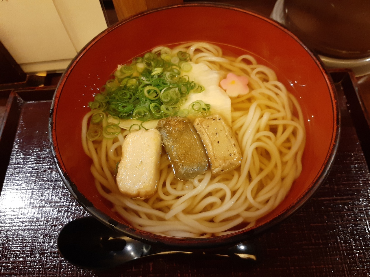 おんどんは細めで半田麺を思わすようなおうどんです