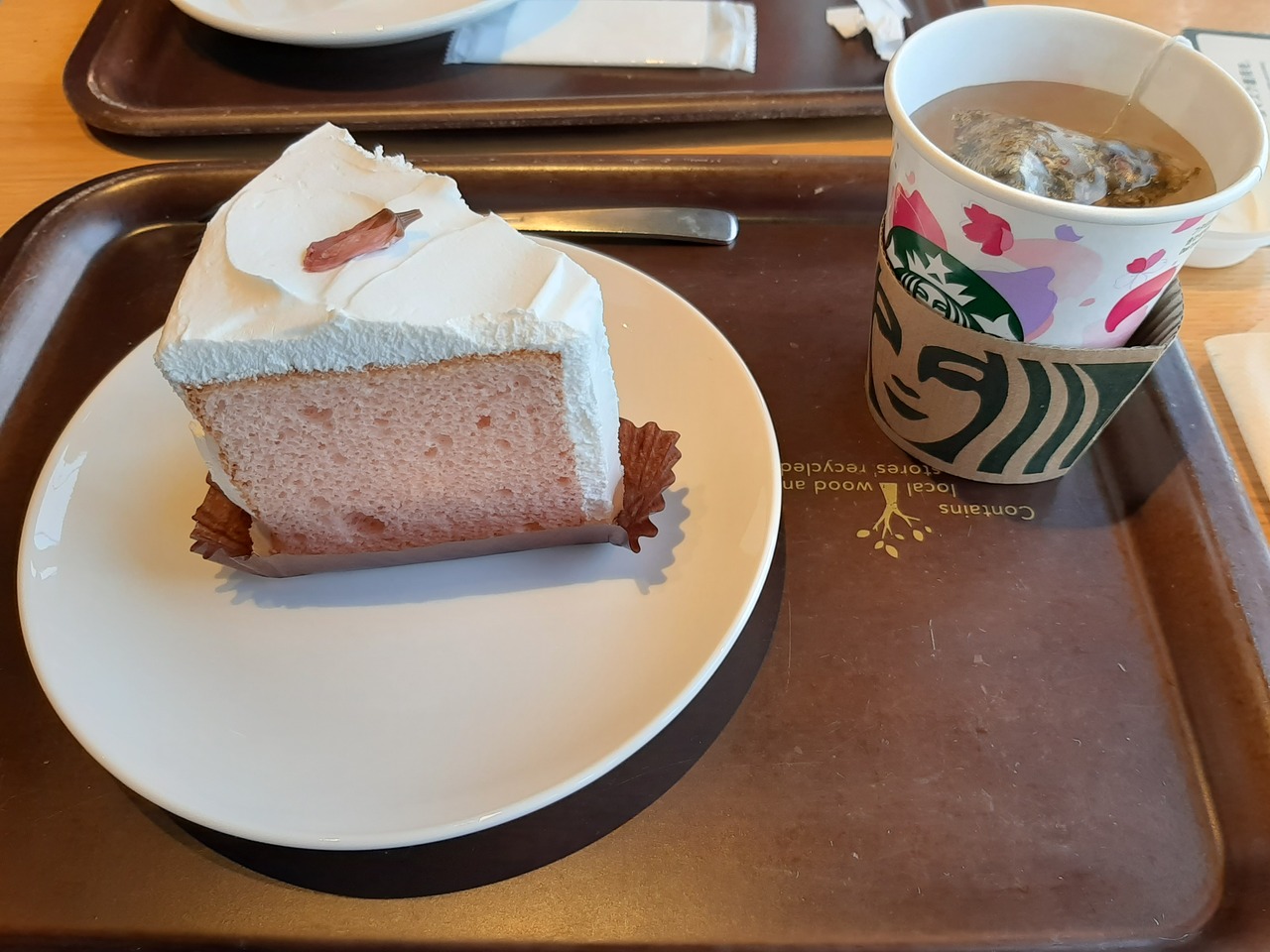 今回はオーツミルクラテのディカフェとストロベリーチョコロールケーキかな