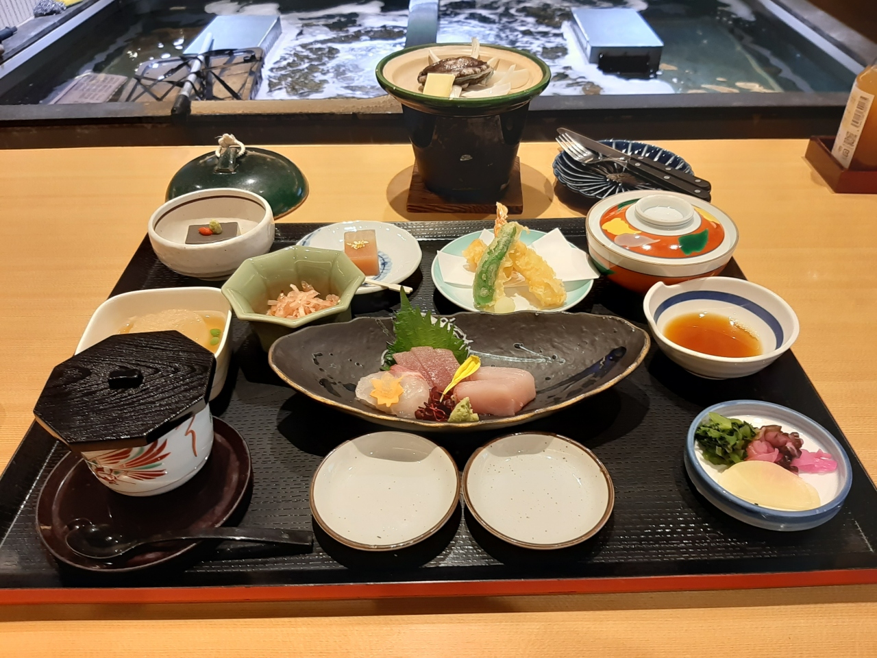 お料理も普通に美味しいですがタイとマグロの漬丼と草餅が美味しかったです。ポットにお湯を沸かして下さっていたのは嬉しかったですが少し臭いが気になりました
