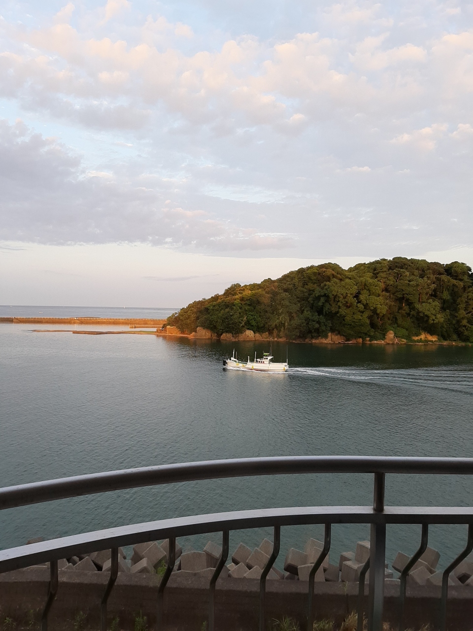 部屋からは釣り船が行きかう様子が見れて干潮や満潮時の景色の違いも楽しめました。日帰り温泉で楽しむのもいいかもしれませんね