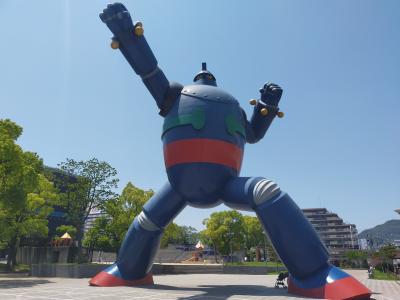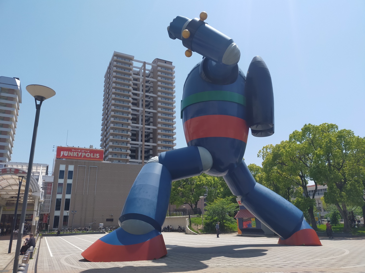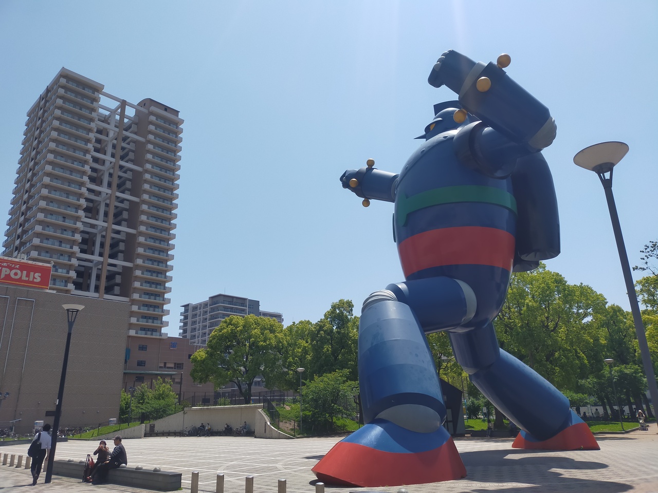 鉄人28号は古典アニメソングの鉄板曲だと思います。アニメ自体は古すぎて見たことは無いですが、歌は歌えます。歌詞がアニメの内容も説明してくれていて(笑)いいも悪いもリモコンしだい。それも恐ろしいですね。こちらの鉄人28号は、新長田駅から歩いてすぐの所に震災復興と地域活性化のシンボルとして建てられました。実物大の大きさということで、近くのマンションと比べるとその大きさが分かります。角度を変えて写真を撮ると躍動しているように見えて、とても迫力あります。鉄人28号に馴染みのない世代でも、見上げてしまうと思います。
