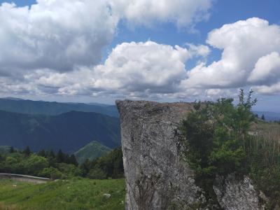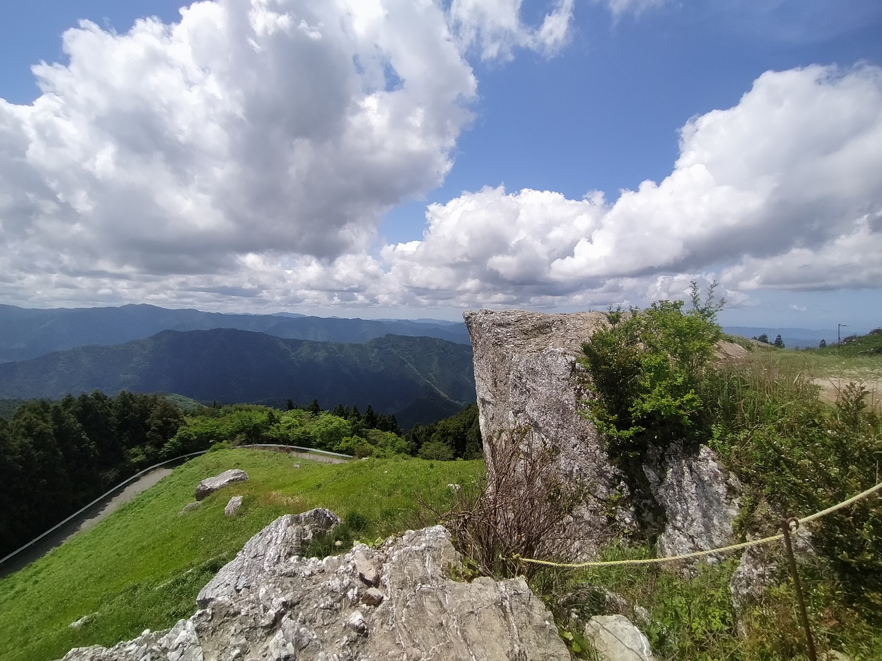 生石高原はススキが有名ですが、駐車場待ちでかなり混むのはわかっているので、時期外れの5月半ばに訪問。日曜でしたが、午前中ということで駐車場もすんなり停めれました。遊歩道を歩いて展望台に向かうと360度のパノラマで、とても雄大な景色が見られました。遠くは有田の海まで望めます。青空と雲、そして山林と海。喧騒を離れてゆっくりと景色を堪能出来ました。フォトスポットとしては、火上げ岩があり、映えスポットになっています。確かに、丘から突き出した岩の上にたって青空をバックに写真を撮ると、絵になりますよ。1組が待っているぐらいで、すんなり写真撮れました。
