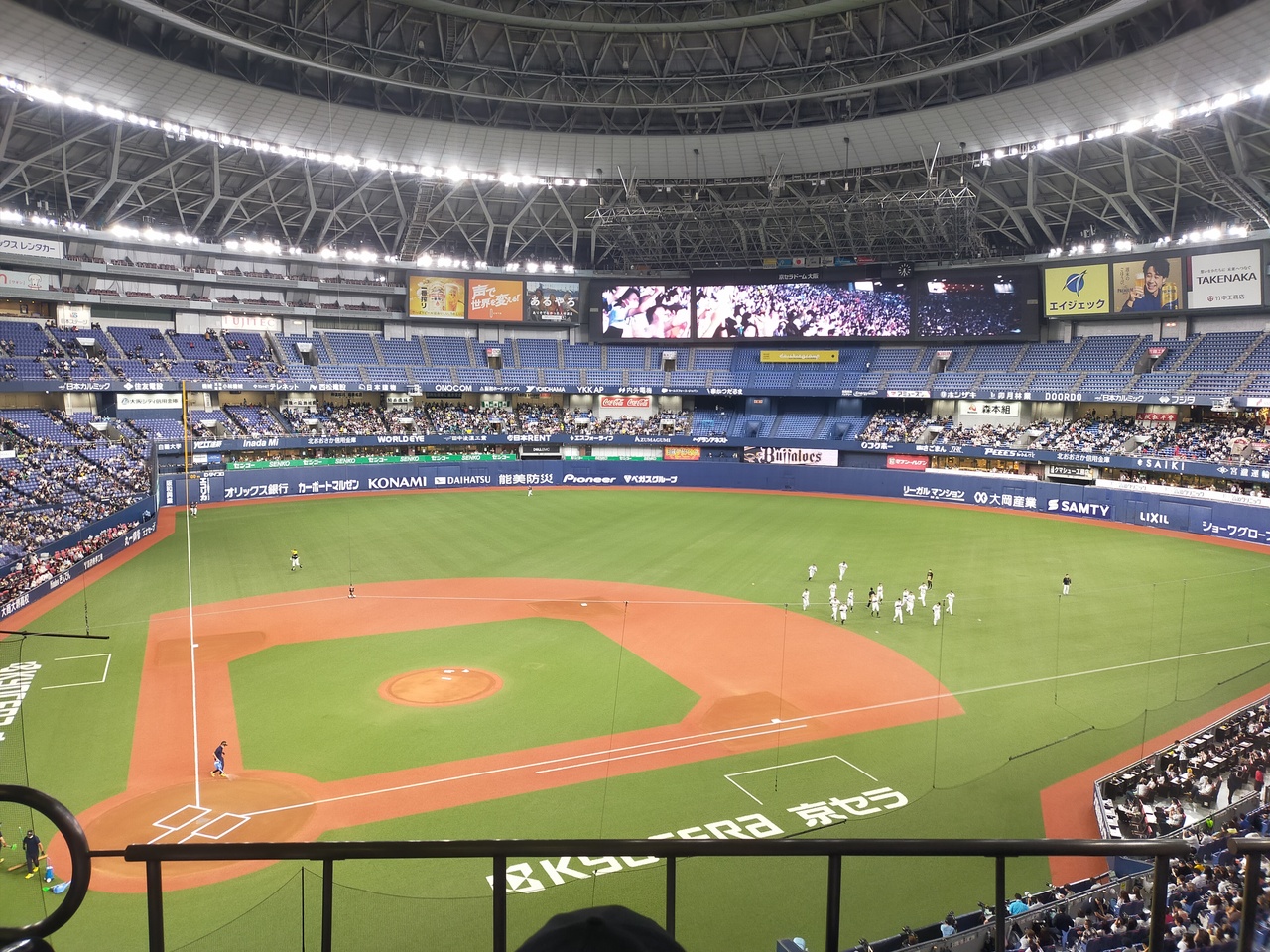 オリックス・バファローズの本拠地です。アクセス至便でJR、大阪メトロ、阪神なんば線から徒歩で行けます。近くにイオンもあるので、観戦メシの調達も問題なし。2年ぐらい前から、ビン・カンの飲み物の紙コップ移し替えサービスが無くなっているので、ビン・カンは持ち込めませんので注意が必要です。食べ物類は一応持ち込み禁止をうたっていますが、お菓子やお弁当も持って入れました。ペットボトルも、凍っていたり、容量が大き過ぎなければ持ち込みokです。チケットはダイナミックプライシングを採用していて、曜日や対戦カードによって異なります。以前はアドバンスチケットを金券ショップで買えば割安で入れましたが、最近はそんなに旨みもないので、前売りを買うのが1番無難かなと思います。上段席でも前の方なら十分グランドが近くに感じますので、私はいつも上段席です。オリックスの公式サイト、オリチケだと座席指定もできるし、発券手数料なし、チケレスで入場もできるので、重宝しています。また、重要な試合でなければ当日券も販売されるので、株主優待で入場するのも安く入れます。球場グルメも充実しています。アルコールはビールは800円、チューハイで600円でした。