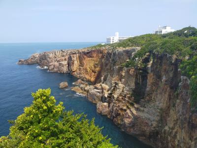 白浜の観光名所の3大鉄板のひとつの三段壁。和歌山はジオ関係の名所が多いです。三段壁も自然が作り出した高さ50メートルの絶景です。無料駐車場(バス3台、乗用車20台ぐらい)から歩いて3分ぐらいで、絶景スポットに到着します。三段壁の看板越しに見る断崖も見応えあります。奥に散策路もあり、ゴツゴツした岩肌で歩きにくいですが、違った角度から三段壁を眺められます。団体観光客にも人気で、白浜コースでは必ずと言っていいほど行程に入っています。9:00ごろ三段壁を訪ねたら、帰る頃にはバス駐車馬は埋まっていました。人気のスポットなので、白浜を訪ねたら行って損はないです。
