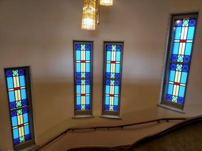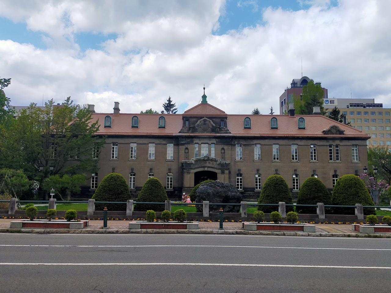 札幌市資料館は札幌控訴院(今で言う高等裁判所で全国に7箇所あった)としても建てられたそうで、ファサードに目隠しをした正義の女神、天秤、剣のレリーフがありました。また、札幌控訴院の文字も見て取れます。内部は重厚感ある造りで、ドラマに出てきそうです。正面の階段はくるっと螺旋になっていて、途中のステンドグラスも綺麗でした。展示内容はあまり印象に残ってないので、建物として素晴らしいと思います。入場料は無料です。大通公園の散歩がてら見るのもありですね。目の前にはヨーロッパで見るような庭園がありましたので、薔薇の時期はまた綺麗かと思います。