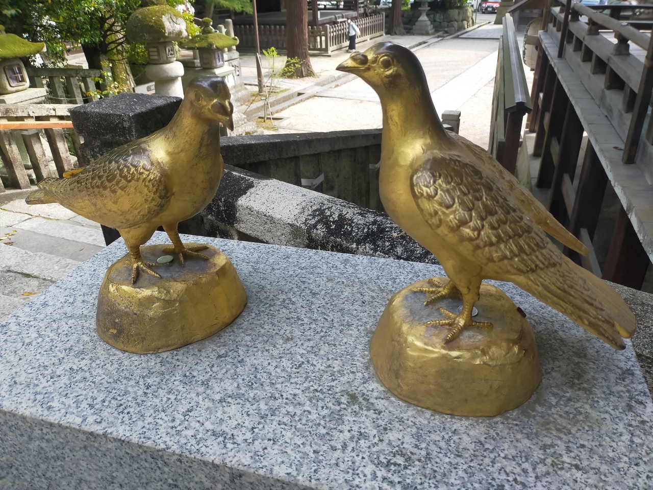 日牟禮八幡宮は正暦2年に宇佐神宮を勧進して建てられました。八幡宮ということで、金の夫婦鳩も奉納されていました。5月に訪ねたので、境内には鯉のぼりが泳いでいて、外国人や子ども連れの人も写真を撮っていました。近江八幡観光の中心地にあるので、気軽に参拝できます。