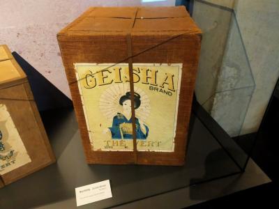 フェルケール博物館では清水港の歴史を展示しています。明治時代の一大輸出品はお茶。清水から横浜へ海上輸送され、横浜から海外へと出荷されて行ったそうです。当時の茶箱のデザインも展示されていていました。鉄路の開設によりお茶の輸送が一段落したら、今度は缶詰の輸出でした。マグロの缶詰、そして冬期はみかんの缶詰。清水で缶詰の製造が大きな産業になりました。SSKの缶詰はみんな1度は見た事があるとおもいます。