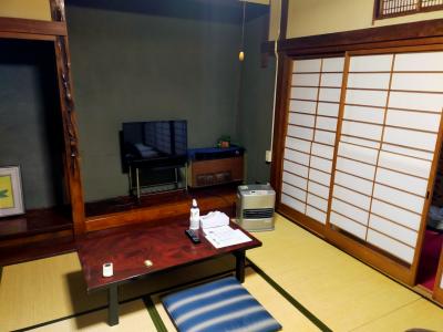 口コミが良かったので泊まりました。旅館の建物は古いです。寒い中でしたので、ストーブをガンガンにたいていてくれたのは助かりました。部屋は布団で、チェックイン時には既に敷いてありました。洗面台とトイレは部屋の外で共同でした。夕食はボリュームあり。基本ご飯やお味噌汁はセルフサービスでおかわり自由です。お風呂は源泉かけ流しと言うことで少し熱めですが、気持ちよく入れました。男子ソロ泊ならいい宿だと思います。