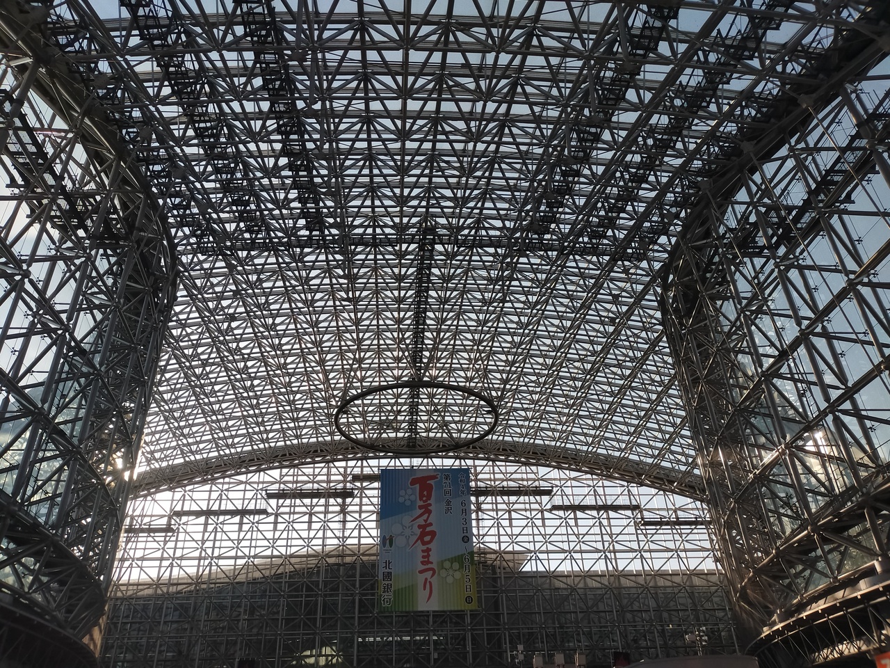 新潟駅から萬代橋に向かう途中に、印象的なビルが現れます。ガラス張りで弧を描くシルエットは、こんなビル作れるのかと素直に驚きます。青空に帆を張るように立つ姿はかっこいです。無料の展望フロアもたり、ドローンで上から俯瞰しているように、萬代橋を見下ろすことができます。エレベーターのガラスが足元まであるので、下の方まで見下ろすことが出来るので結構怖いです。