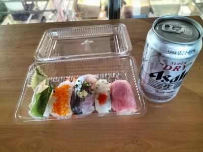 数年前に1度訪ねてすごく良かったので、再訪です。そしてやはり良かった。朝から活気のある市場で、観光客もワクワクしながら何を食べようか選んでいました。お寿司や海鮮丼、揚げ物、汁物なんでもありました。お寿司も店ごとによって食材が違うので、悩みます。好きなものを選んで注文。2階や屋外の飲食スペースで食事です。もちろんビールも忘れずに。新鮮なお寿司とビールがとても美味しかったです。