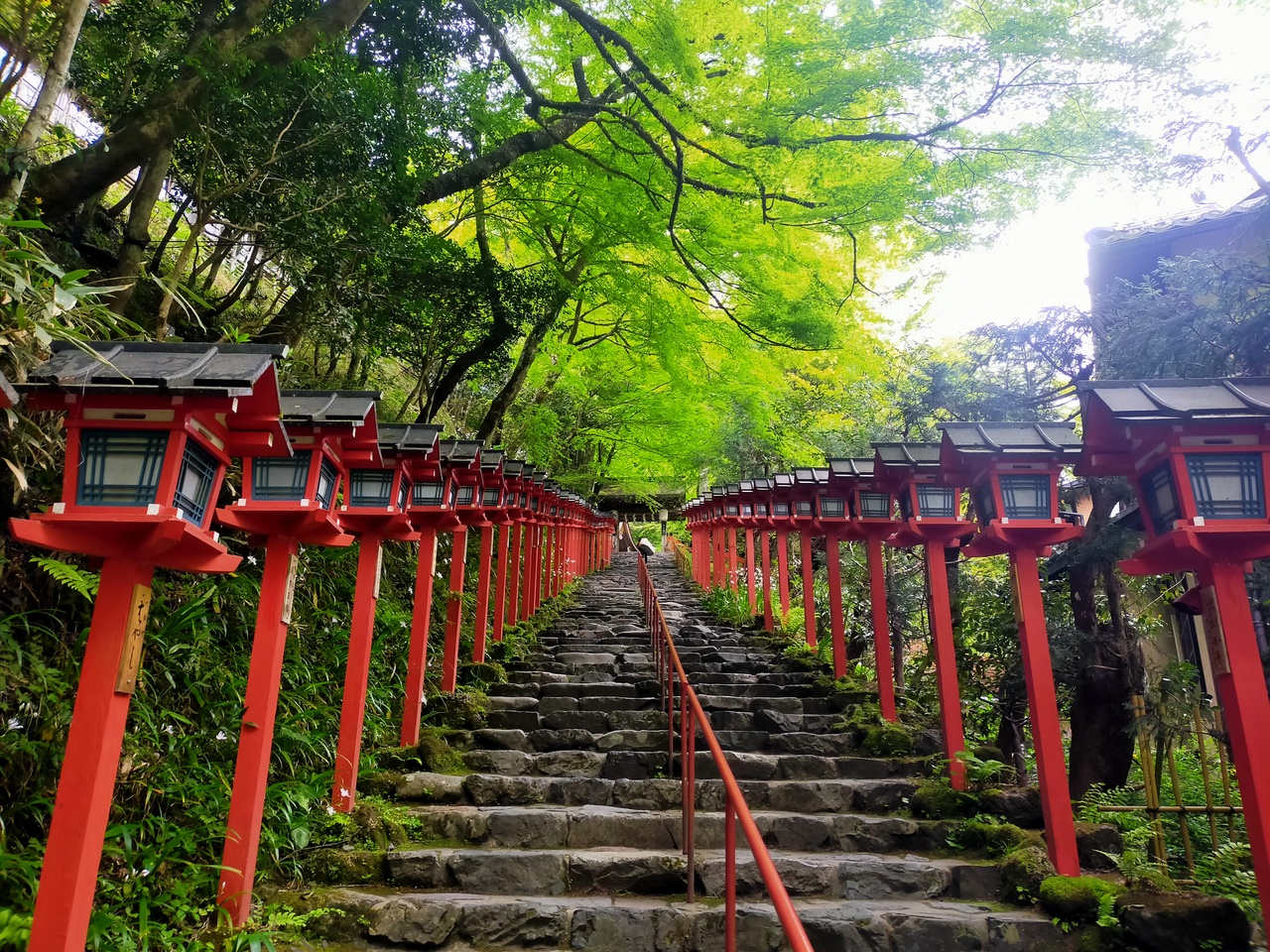 桜や青もみじ、川床、紅葉など様々な見どころがある貴船神社ですが、私はシャガの群生がとても綺麗だと思います。桜が終わって、ゴールデンウィーク前後の青もみじも綺麗な時期にシャガの花が咲き誇ります。貴船口で降りて、貴船神社まで歩くのがオススメです。貴船川沿いの至るところに花が咲いています。この時期はそんなに暑くないので、30分弱、貴船川のせせらぎと青もみじ・シャガを見ながらのハイキングはオススメです。平日だと10時前に貴船神社に着くと人も少なく、いいさ写真が撮れます。お昼前に行くにつれ、人が多くなってきます。海外の方は朝が結構遅いので、バッティングしないためには早めに行くことがオススメです。