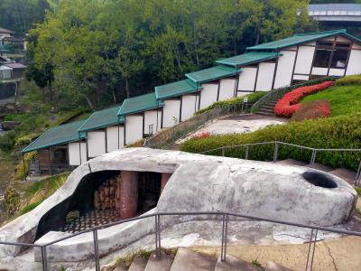初めは旅行の予定になかったんですが、多治見市美濃焼ミュージアムで美濃焼きの窯跡が見学できると知って、訪問。車で10分ぐらいでした。公園へ入っていく道はそこまで大きくなくて、乗用車1台が通行できるかなという細い道を入っていきました。駐車スペースは10台ぐらいあって、まだ奥にもありそうな感じでした。窯はとても迫力がありました。1号窯という焼成室が単式の窯や、連房式登窯という焼成室が複数つらなっている窯跡があり、後者の方がより多くの陶器を一度に焼けるという技術革新が起きたものでした。実際の大きさで展示されているので迫力があり、歴史も学べて良かったです。