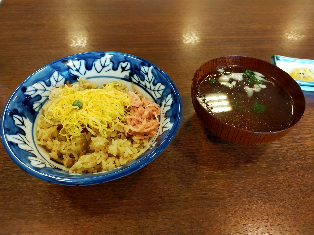 「今日は骨付鳥いこっ」前回丸亀を訪ねた時にこのポスターを見て、ずっと食べたかった骨付鳥。時間帯的に昼食しか合わなかったので、ランチで訪問。平日の13時前だったので、すんなり入れました。親鳥の骨付鳥と鶏飯を頼みました。骨付鳥は食べやすくカットされていました。鶏飯は出汁が効いていて、お吸い物も美味しかったです。願わくばもう少しお安ければ良かったかなと思います。