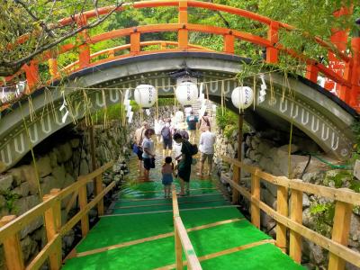 御手洗祭は京都の下鴨神社で土用の丑の日前後に行われるお祭りで、穢れを祓うために御手洗池の湧水をくぐり、ロウソクをお供えするという神事です。池を通るっていってもぬるい感じの水でしょと思っていたら、そんなことは全然なく、キリッと冷えた水が膝下ぐらいまでの高さであるので、初めて訪ねた時は衝撃でした。穢も祓えて、気持ちもシャキッとなります。今回は午後の時間帯に行きましたが日が暮れるとまた、一層幻想的になります。