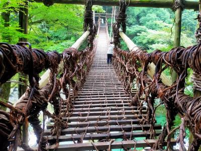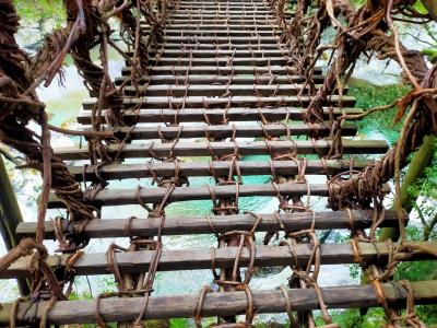 かずら橋発着だと正味30分あれば渡橋して帰って来れます。かずら橋は一方通行なので、入口で料金を払ってそのまま渡るとうパターンです。かずら橋は隙間が結構空いていて、1歩進む度に結構揺れるので、スリルがあります。歩くところを考えないと大人の足も踏み外してしまうほどスペースがあります。- 旅行時期