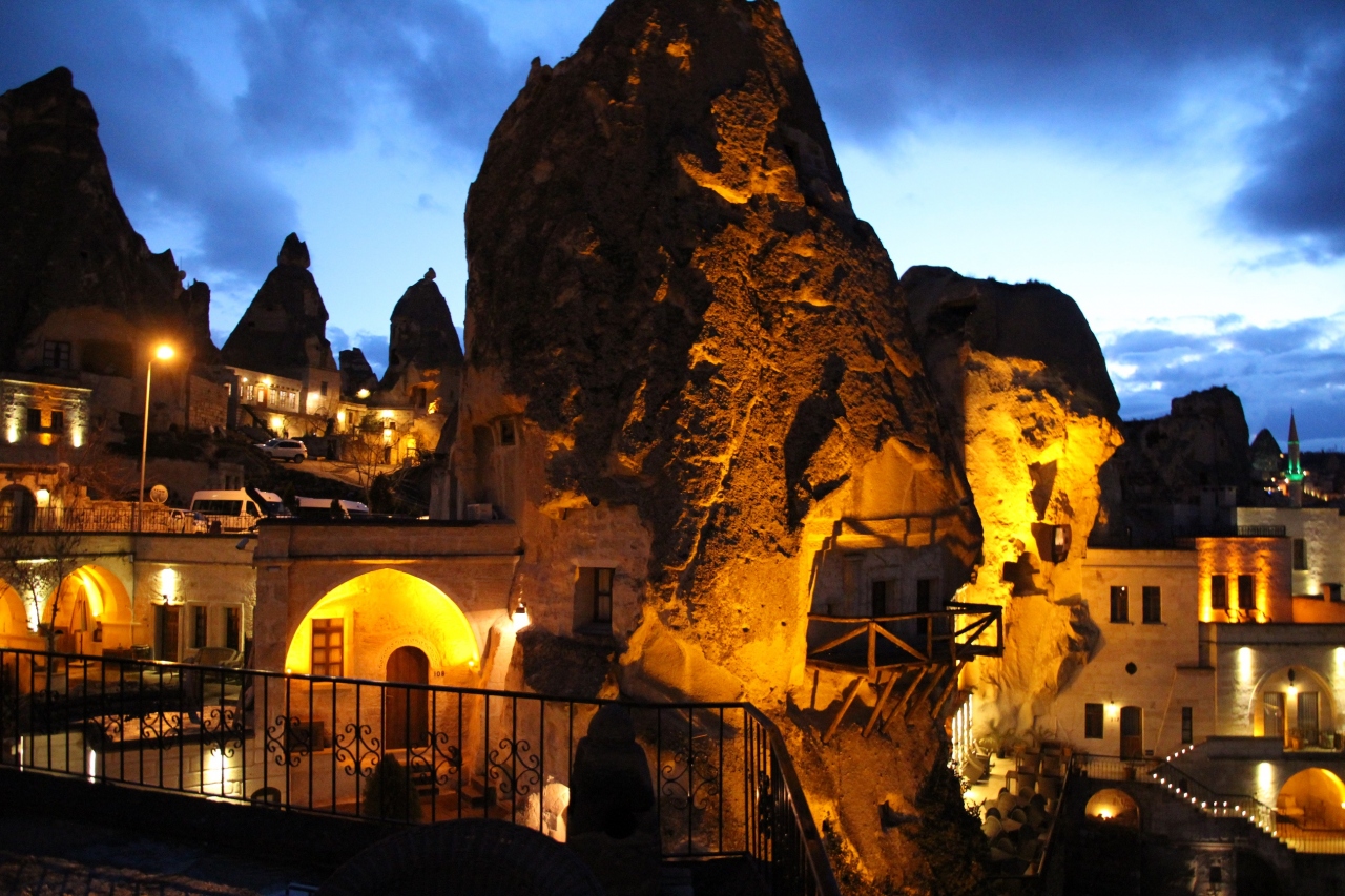 デラックスのためかギョレメの市街地を望むお部屋でした。部屋を出たところにテラスのようなスペースがありました。部屋は狭かったけれど洞窟感がでていてよかったです。ただバスルームからの下水のにおいには閉口しました。ホテルのオリジナルツアーが2種類あり、だいたいの観光はできます。気球ツアーも扱っていてとても便利でした。- 旅行時期