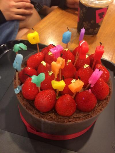ホールケーキを買い、ろうそくを立てて火をつけて運んできてくれました。