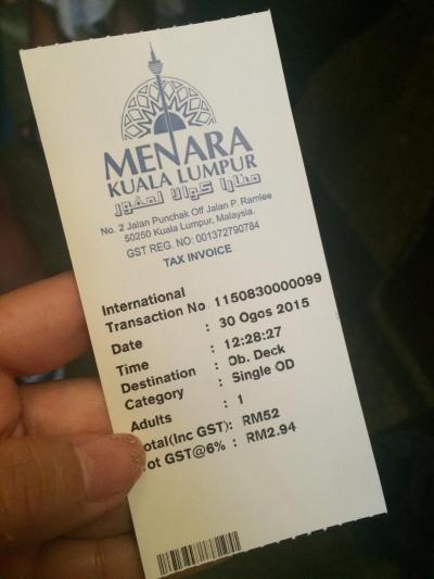 タワーは二段階に分かれてお値段も違います。52リンギットの一つ下の展望台からみましたがここからでも十分満足でした。