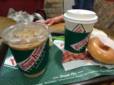 クリスピークりームドーナツはどこで食べても同じ味で安心します。