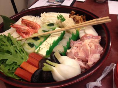 白菜など下ゆでしてあり、見た目もキレイなお鍋です。