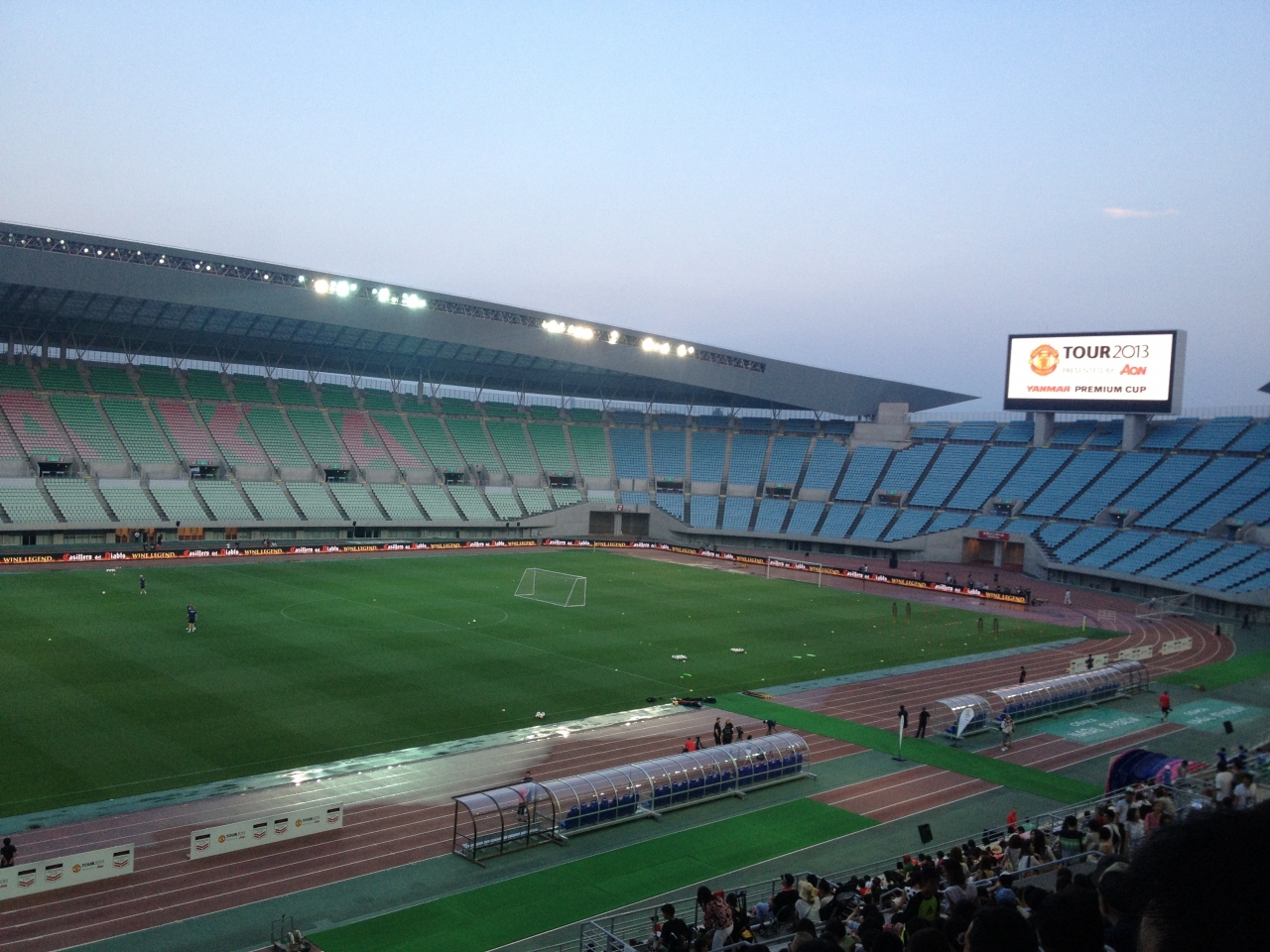 サッカーを見るのは。。サッカー専用スタジアムではなく陸上競技場なので。。客席から遠いですが。。交通の便はいいです!