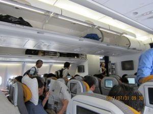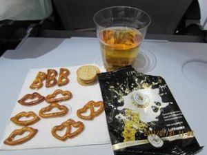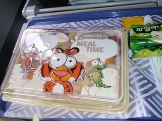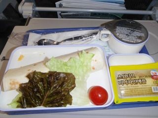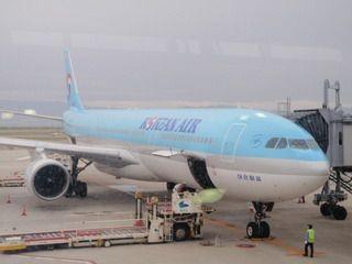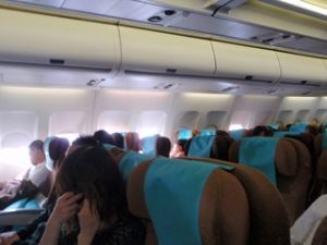 座席間はやや狭めですが、ソウルへの2時間くらいなら苦になりません。