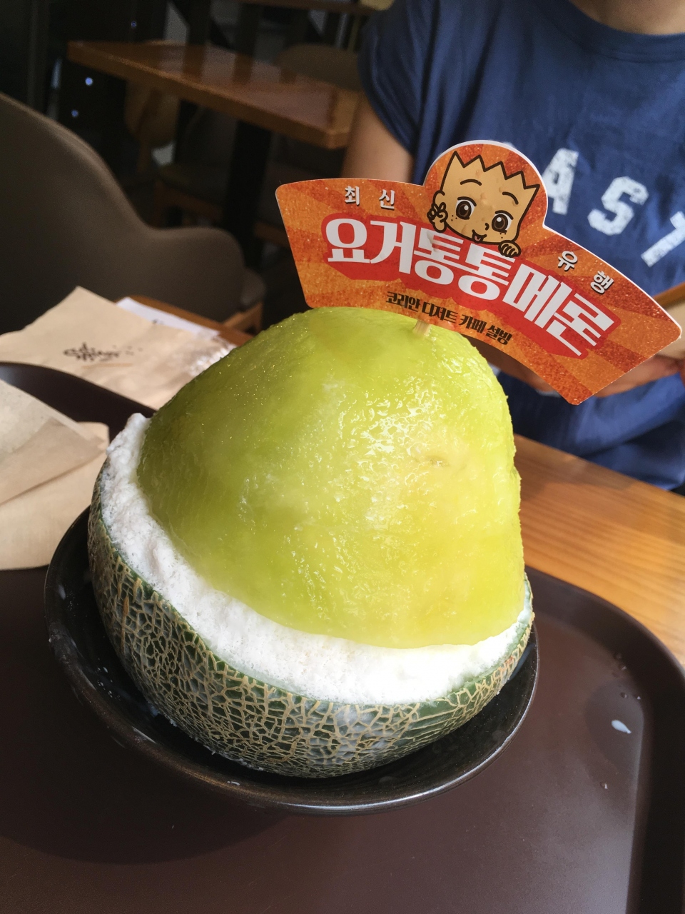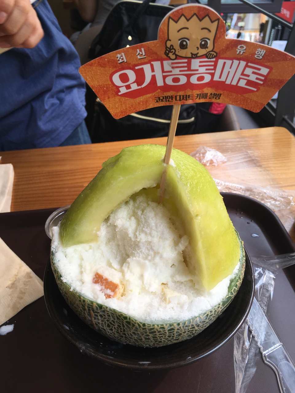 半玉のメロンが乗ってて、中にはミニチーズケーキ・ヨーグルトアイス・カキ氷が葉一っていて食べ応えありでした。- 旅行時期