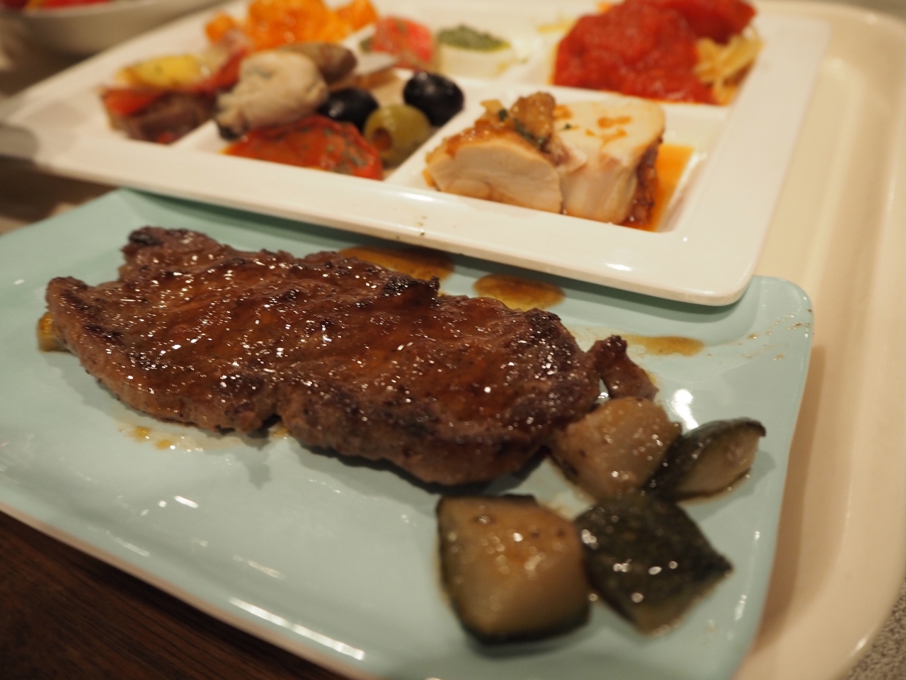 「リザンシーパークホテル谷茶ベイ」内にあるレストランで、宿泊プランに付いている食事券でいただいたので、どのくらい費用がかかったのか不明です。ステーキ食べ放題もやっていて、分厚いステーキではありませんが、好きなだけ食べることができるというのは嬉しいですが気を付けたほうがいいです食べ過ぎると胸焼けします(笑)