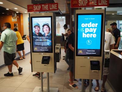 知りませんでしたが、オーダー方法が変わった模様です。カウンターの前にあるタッチパネルで注文を入力して、クレジットカードを使えば注文・精算まですべて完結します。番号札を見て店員がテーブルまで品物を運んでくれます。まさしく、「旨い・安い・早い」を地で行くファストフード店です。