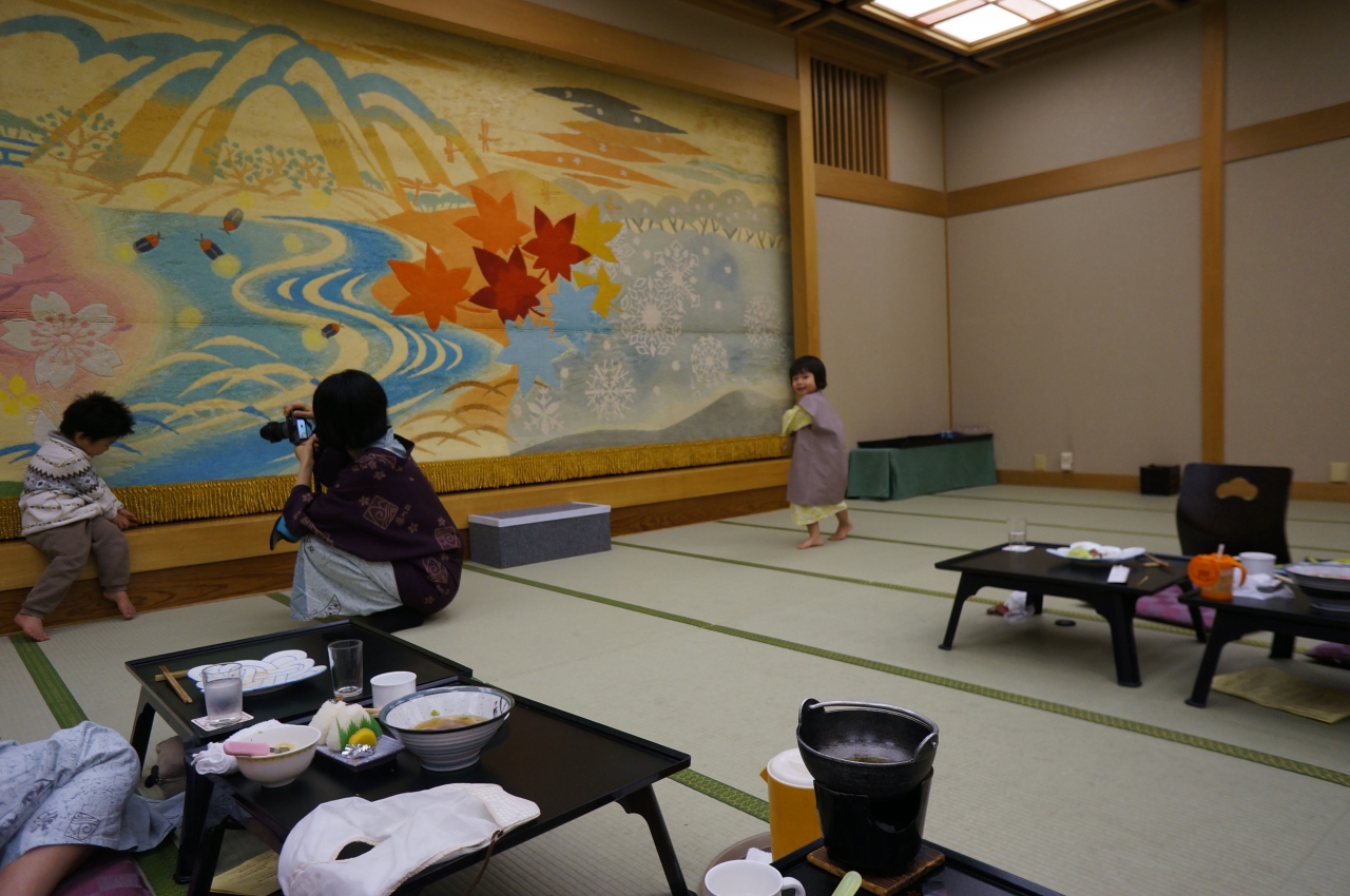 部屋は家族とグループに分かれ、食事はみんなで一緒に広間を利用しました。