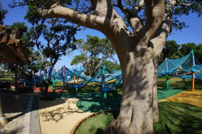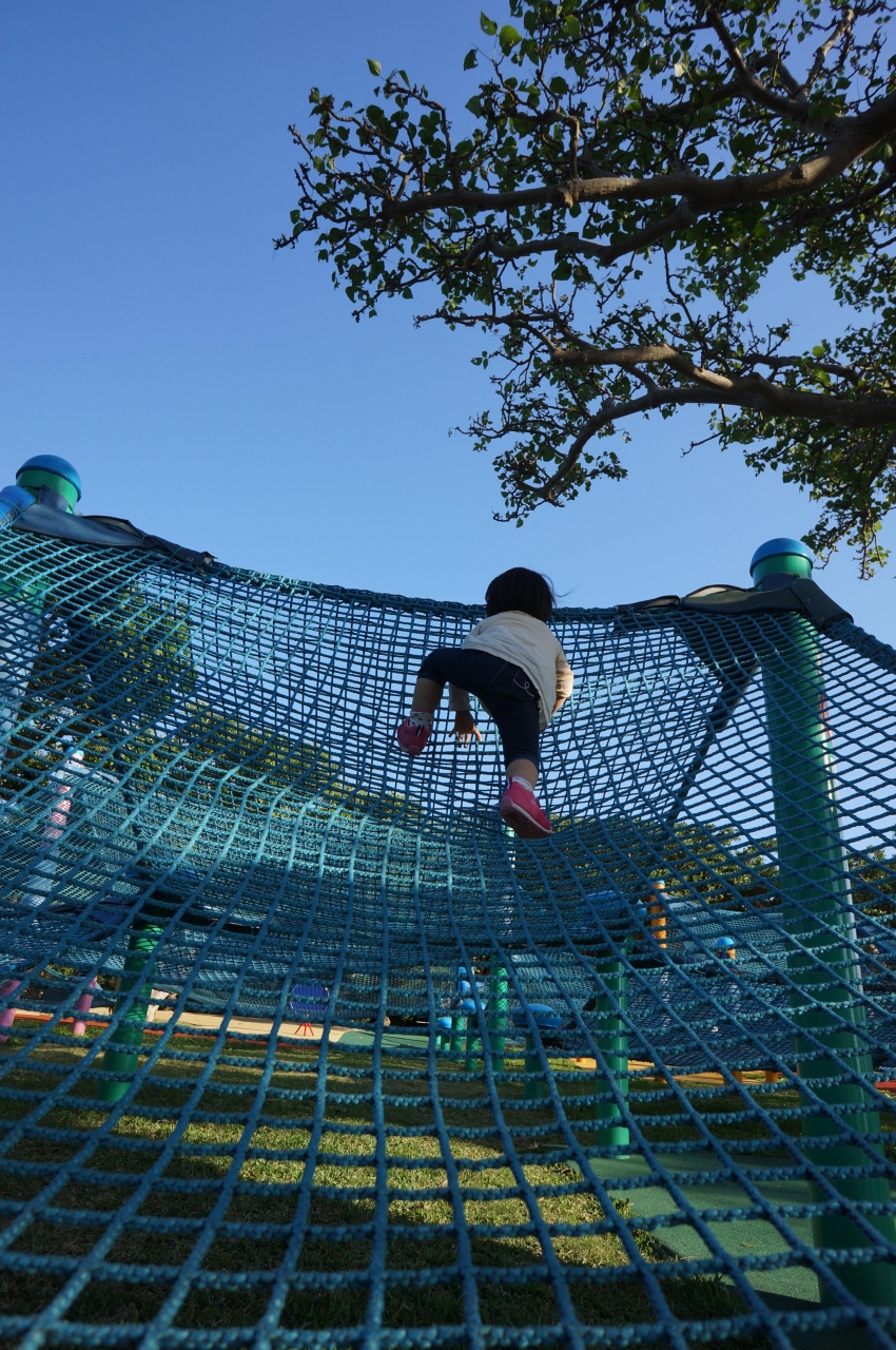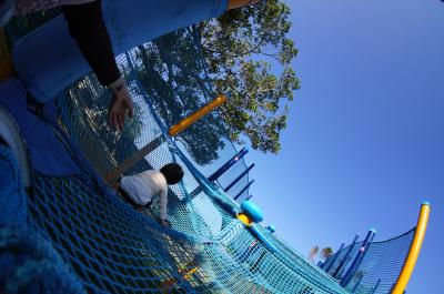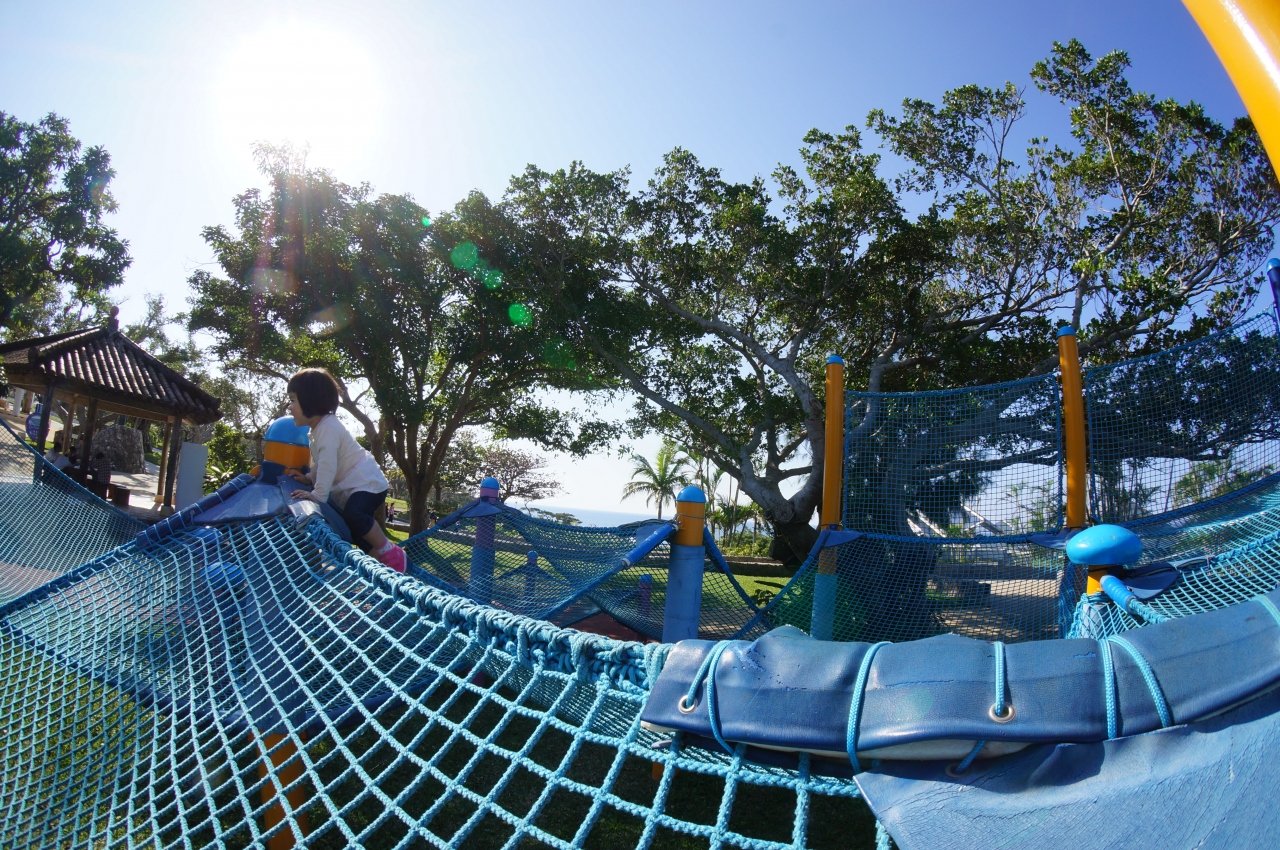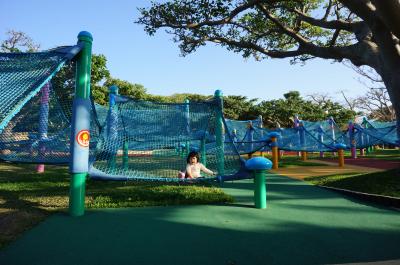 とても大きなネット遊具で、ネットのキレイなブルーは沖縄の海を表現しているそうです。