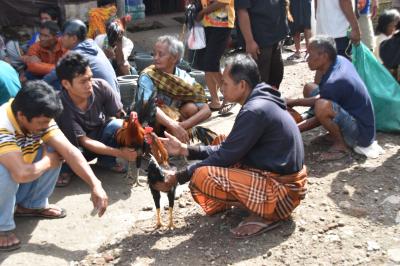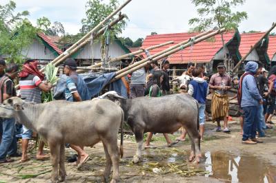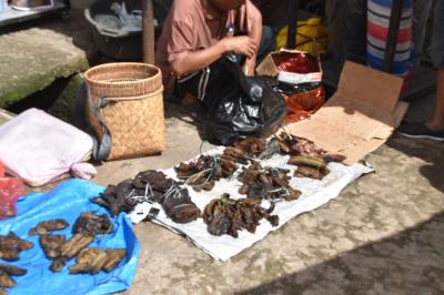 茣蓙やブルーシートの上にいろいろな肉を並べて売っている。