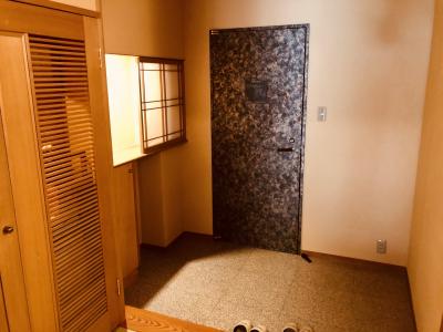正面が和室。右手が水屋、左手が洗面ルームとバスルーム。